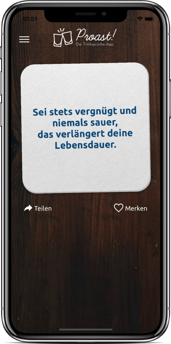 Mit über 100 Trinksprüchen ausgestattet findest du immer das passende für jede Situation. Dabei kannst du ganz einfach in den Kategorien nach einem geeigneten Trinkspruch suchen.